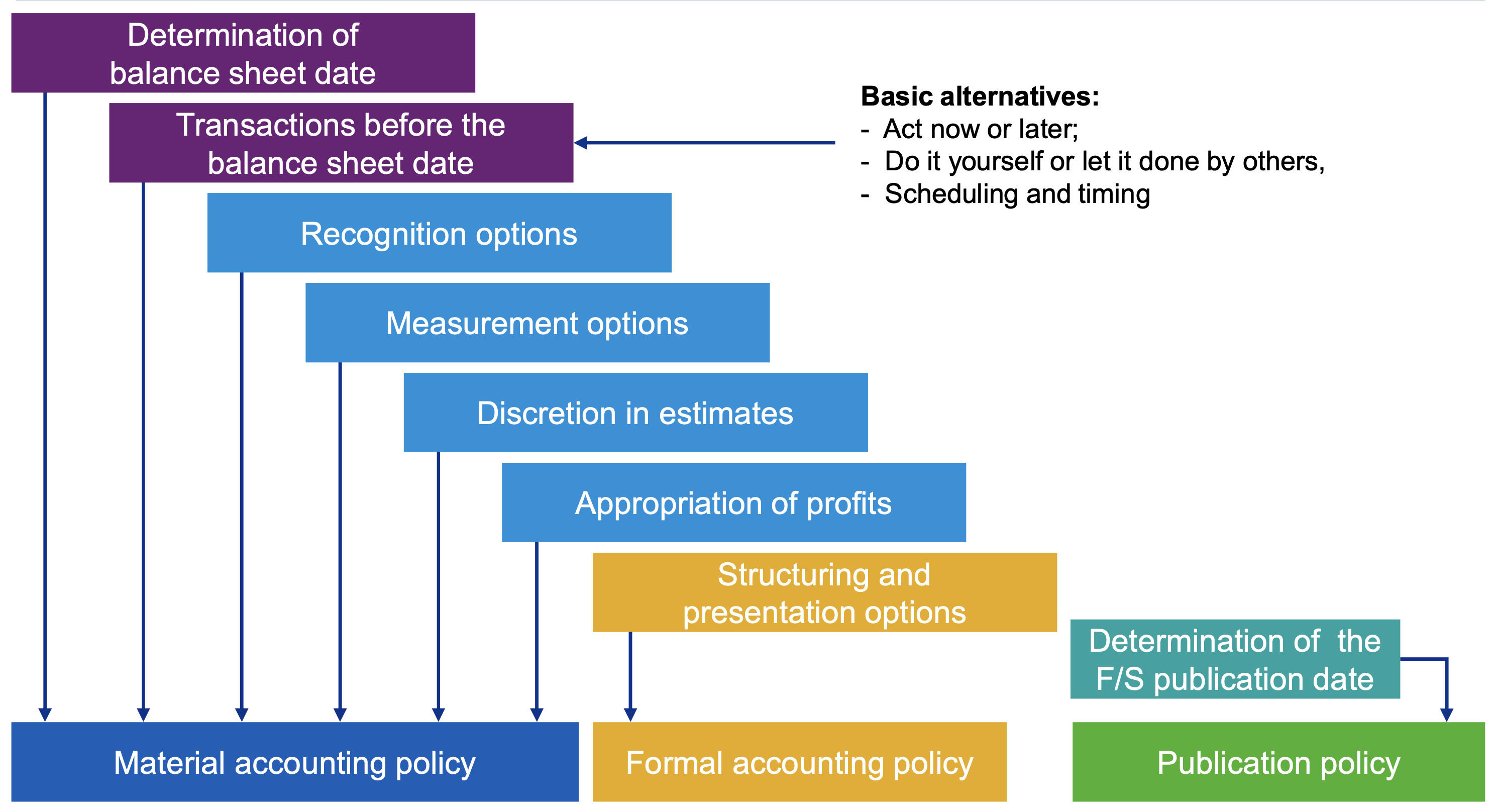 The accounting policy aims to present the net assets, financial position, and results of operations of an entity as positively as legally possible. Short-term and long-term policy objectives must be coordinated with strategic objectives and the interest of the various stakeholder: