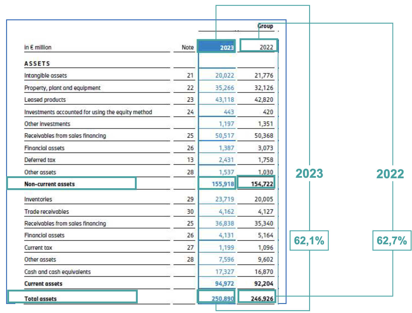 - Example: Non-current assets as a percentage of total assets.