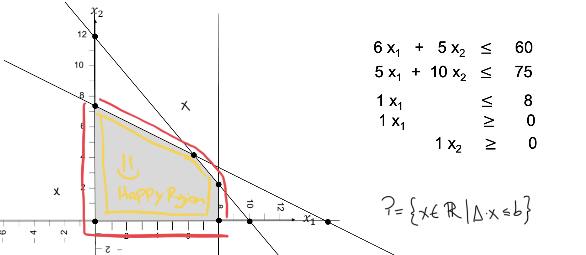 - Feasible: An extreme point that satisfies all constraints.